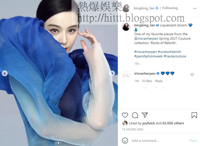 曾一度雄霸中國時尚、在國際名牌中人氣爆燈的范冰冰,前年因逃稅風波而被內地封殺,一度消聲匿跡。近年積極復出的她,對收復時裝界地位野心勃勃,她昨日前就搶先在IG 驚喜穿上Iris Van Herpen 2021年春夏高訂系列現身。