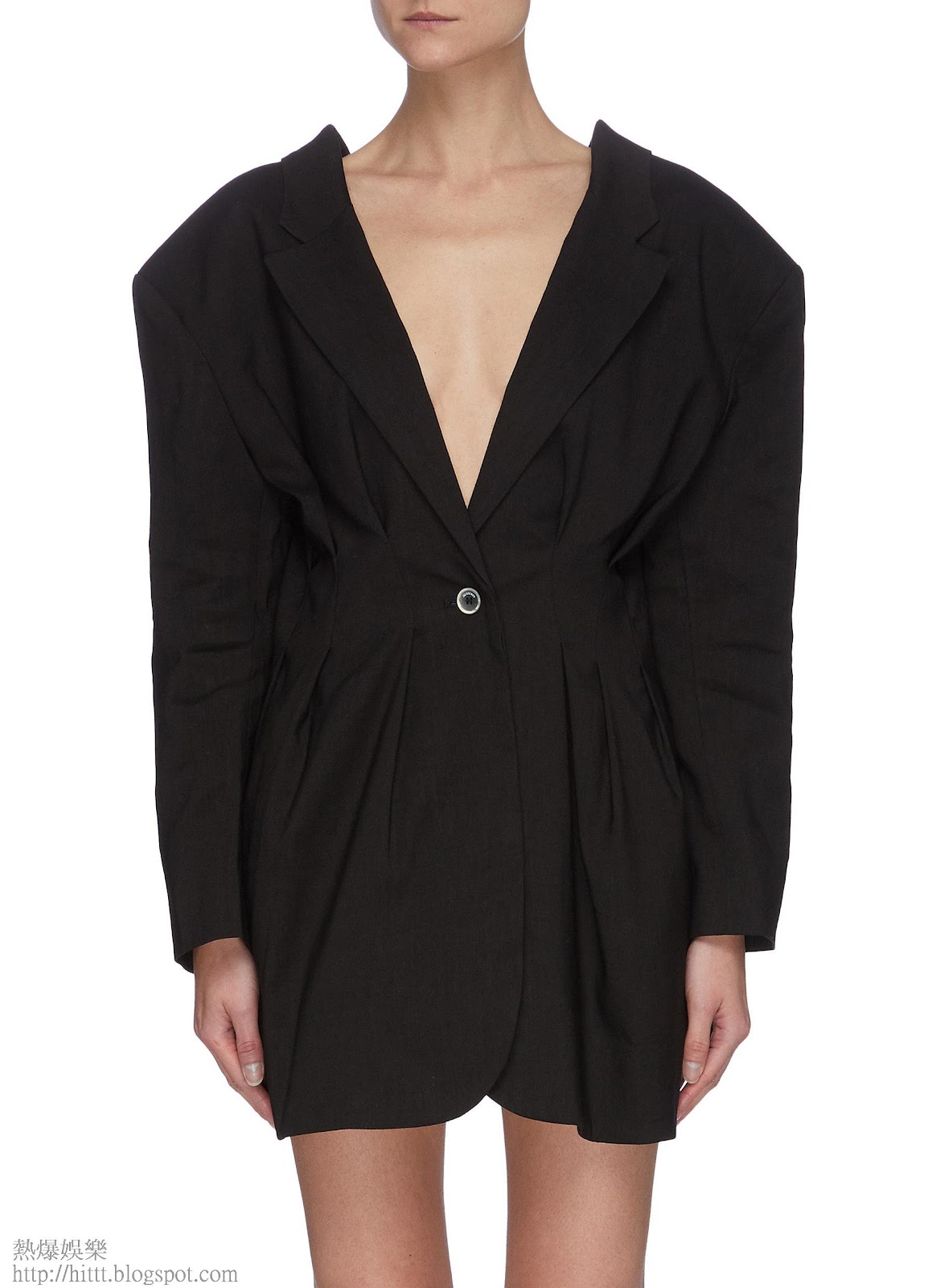 近年黑西裝設計在剪裁上更加多變化,Jacquemus新季的西裝領口用上拉長的V輪廓,輕帶結構感,又可以直接當裙着;Dion Lee則在腰間飾以綁帶的鏤空細節,而Loewe的西裝衣袖尾端增添了氣球袖的剪裁,別有韻味。