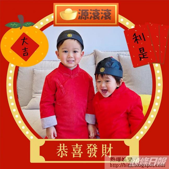 早前宣布懷第三胎的胡杏兒獲邀為內地央視春晚表演,正身處北京的她昨晚年三十也未能跟家人食團年飯,老公李乘德(Phil)惟有獨力湊住3歲大仔李奕霆(Brendan)和1歲半細仔李奕霖(Ryan),返沙頭角圍村大掃除及黐門神、對聯、揮春等,Phil指今年兩個囝囝都大個仔,終於可以參與一些傳統儀式,又表示會將這些客家習俗一代傳一代,並以英文留言透露:「Brendan仲識講少少客家話,令啲村民好驚喜好開心,我諗佢都樂在其中。」相中,見Brendan和Ryan着晒唐裝拖實爹哋,Brendan仲有份上香拜神,真係大個仔喇!而杏兒昨今就分別於IG貼出自己的獨照,以及一對寶貝仔穿上紅噹噹長衫、戴Bob帽照,向一眾粉絲拜年,她寫道:「祝福大家,新年快樂身體健康萬事如意心想事成!!」