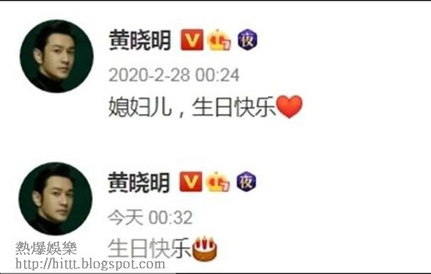 點知兩日後,黃曉明終於都為老婆發聲,於社交網出post公開祝賀Baby生日,簡單留言:「生日快樂。」加上生日蛋糕emoji。