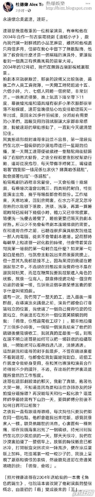 【吳孟達病逝】杜德偉難忘達哥敬業專業終身受用杜德偉稱達哥是他最敬重、一個真正有俠義風範的前輩。杜德偉在社交網貼上吳孟達在2004年送給他的書《角色的誕 ...