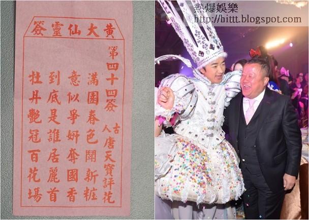 牛年娛樂圈整體運勢,求得88號中吉籤「花木蘭從軍」,張師傅話香港娛樂事業經過艱苦日子,將走出寒冬,迎接春天到臨,漸漸重拾正軌,都算唔錯!而影視圈發展如何?同埋電影業能否復甦?就求得44號籤「唐天寶評花」,屬上上大吉,籤文解說春天花開富貴,其中牡丹花特別一支獨秀,即無論電影、電視題材,都以喜劇、開心事較受歡迎!講到開心快樂,令人聯想曾志偉及王祖藍回歸無錢,究竟佢哋會唔會再創高峰?