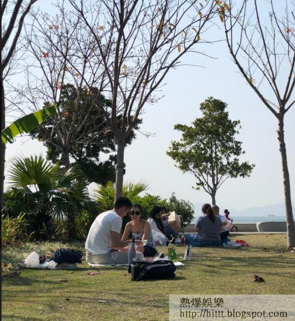 當日下午3時許,天氣乍暖還寒,麥明詩明顯經過悉心打扮,穿上吊帶小背心,戴住太陽眼鏡及束起秀髮,在微弱陽光照耀下更見清麗氣質。西九一帶有好多cafe,但Louisa和Keith寧願選擇海旁附近的大草地野餐,親親大自然享受「郊遊」樂趣;他們在一個有疏落樹蔭遮擋的位置落腳,放了一張地墊,還帶備酒杯,一邊飲酒一邊嘆小吃,其間有除低口罩。見Keith悠閒地赤住腳席地而坐,Louisa則含情脈脈望住對方,似乎有傾不盡的話題,黎小姐說:「個男仔都好大隻,好多嘢講,麥明詩大部份時間都係聽個男仔講嘢。雖然佢哋冇乜親暱動作,但麥明詩個樣好冧,明顯係一對情侶。」