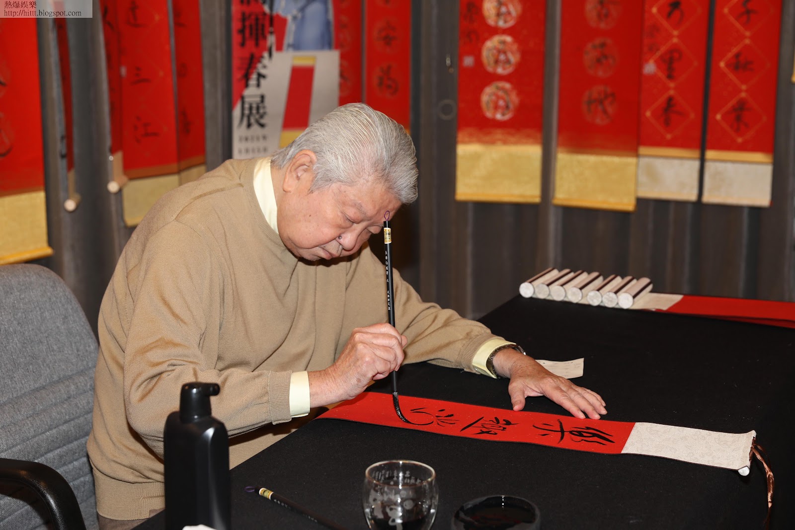 79歲才子蔡瀾體魄壯健,工作不斷,早在3個月前手癮起隨心寫了不同揮春,展現書法藝術,於上月舉行為期4星期揮春展,今日親自到天地圖書踩場即席揮毫,滿足fans。