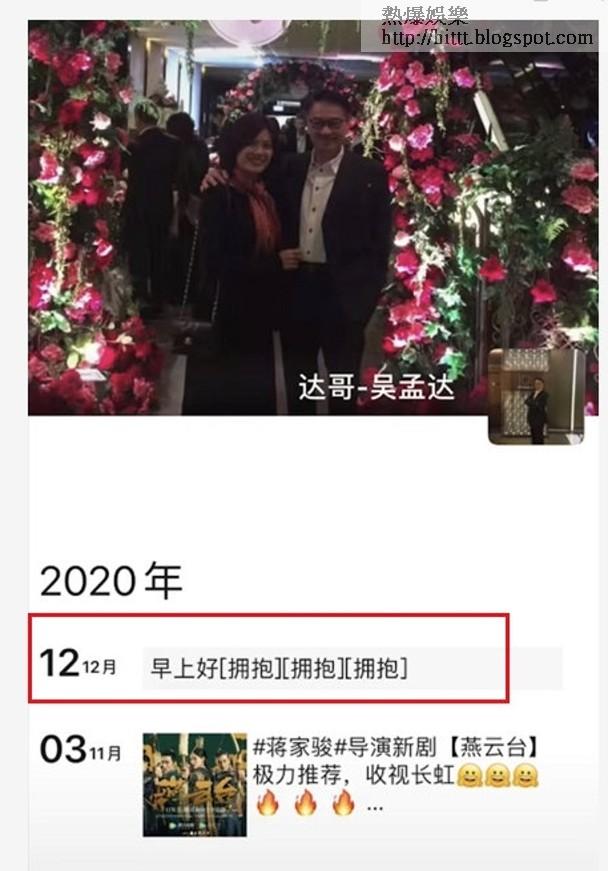 另外,網上傳出一張指為吳孟達生前發的最後一條朋友圈博文截圖,背景是他與現任妻子參加聚會時的合照,最後一條動態則為2020年12月12日留言「早上好」。