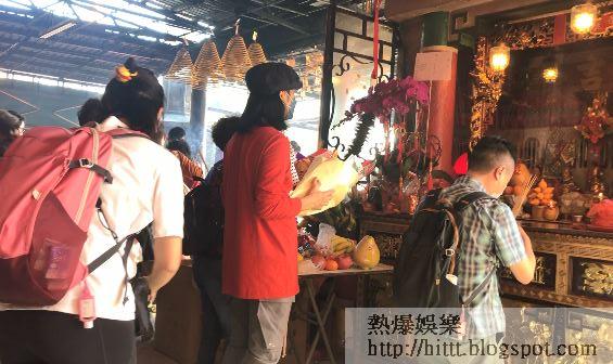 湊巧的是同場還有蔡一智兩公婆來到龍母廟拜神,卻跟阿葛緣慳一面。穿紅色上衣的蔡一智拿香燭和衣紙先行入太歲廟拜神,估計來拜太歲祈福和保平安。由於現場有不少善信,蔡一智和太太要左穿右插才上到香,而蔡一智好誠心拿着衣紙向神明許願,才拿出戶外化寶爐化寶。