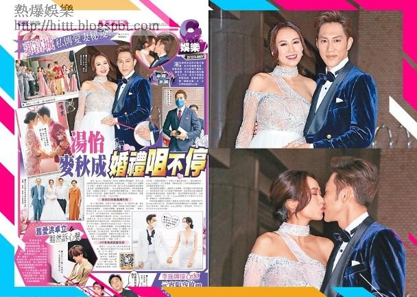兩口子跟足傳統,前晚各自做上頭儀式。為了抱得美人歸,麥秋成昨晨接新娘時豪派開門利是,舞藝了得的他又應要求擺出「人類不能做的瑜伽動作」,出盡渾身解數,勉強過關。接完新娘,一對新人斟茶給長輩,Kathy父母為愛女戴龍鳳鐲時,按習俗扭了多下,其父更是扭不停,寓意兒孫滿堂生不停!