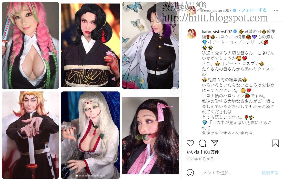 以騎呢見稱的東洋名媛叶恭子和叶美香,近年轉玩cosplay,並深得網民及動漫迷熱捧,而叶美香為慶祝《鬼滅之刃》第二季動畫即將推出,近日貼出「遊郭篇」角色「墮姬」的爆乳look乘機抽水,雖然她已在去年公開此造型,但仍獲網民大讚還原度極高。其實,叶姊妹先後化身成多個《鬼滅》角色,包括禰豆子、蝴蝶忍、甘露寺蜜璃、煉獄杏寿郎、累母蜘蛛等,拍得住黃夏蕙化身十二生肖一樣精彩。
