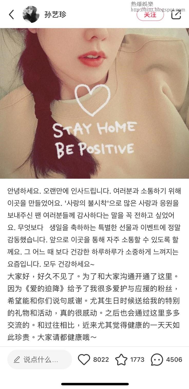 近日,有網民發現孫藝珍疑似開小紅書冧大陸fans,該賬戶目前有近2萬fans,賬戶的第一張照片是孫藝珍的自拍照,而且分別用了韓文及中文留言,感謝fans對《愛的迫降》的支持及早前送上的生日祝福,又表示之後會多透過小紅書跟fans交流。孫藝珍本身甚少更新官方微博,最後一次於微博留言已是2018年,而且當時她只用韓文留言,加上韓國方面未有孫藝珍開小紅書的報道,暫未知孫藝珍是否真的「社交移民」開小紅書。