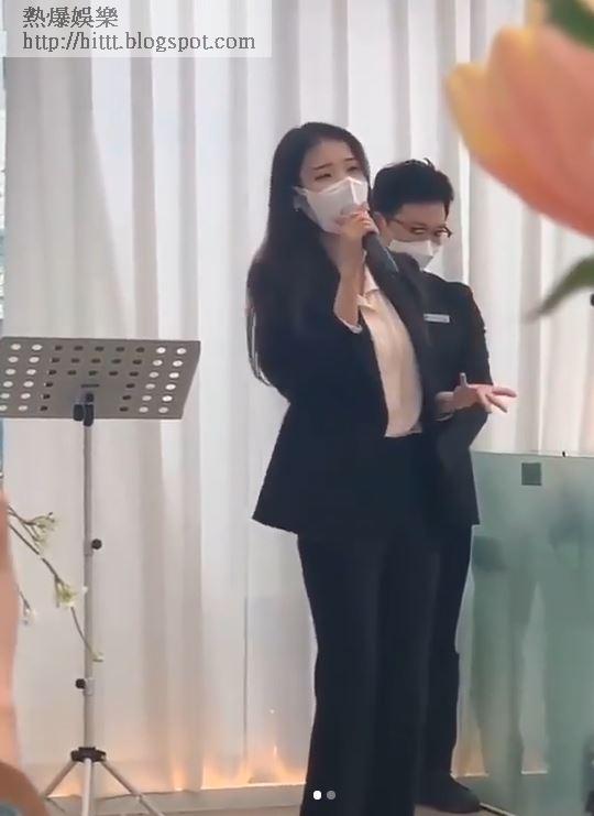 而跟IU合作了8年的經理人於今日結婚,IU幫忙邀得《鬼怪》女星好友劉仁娜任司儀,她就大晒歌喉獻唱《Bleuming》,為一對新人送上祝福,令不少網民大呼羨慕IU的工作人員。從網上流出的影片可見,IU穿上黑西裝型格到場,獻唱祝歌時更投入得郁身郁勢,獲fans大讚可愛,至於現場防疫措施亦做到足,在場人士除了新人,包括IU在內的賓客都戴上口罩防疫,就算她唱歌時也沒有脫下口罩。