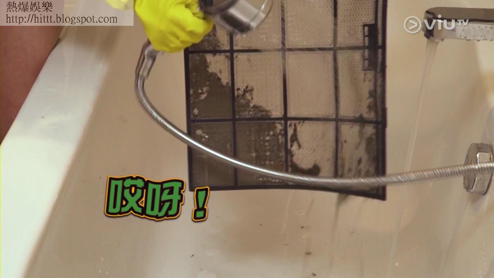 邱晴拿着勁多塵的隔塵網,打算在洗手盆清洗,Kathy仔即說:「吓!洗手盆?唔得!你要用花灑沖。」正在浴室清理的伍詠詩和Hebe望一望邱晴手上的隔塵網都大嚇一跳,洗完浴缸的伍詠詩無奈地說:「冷氣機隔塵網呀?再捽多次個浴缸囉,冇所謂!」此時,Hebe好心替邱晴洗隔塵網,點知太厚和多的塵垢令浴缸去水位淤塞,Hebe嘗試用手撈起塞住浴缸的塵垢,但最終都是失敗。