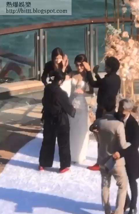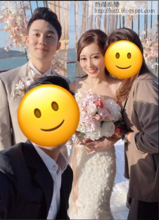 新娘子穿上款色簡約的吊帶低胸婚紗裙,騷兩吋事業線,表現風騷,沒有戴上透明口罩防疫,每張相都帶着燦爛笑容,與新郎哥Martin簽紙後互相交換戒指,在親友起哄下錫錫,新娘子更肉緊將手放在老公肩膀,甜蜜滿瀉。現場的佈置以粉調色系的鮮花作點綴,帶有古典味道,一對新人亦有到戶外的海邊跟親友影合照。黃小姐說:「佢哋只係搞reception cocktail,簡簡單單,走廊仲放置咗好多佢哋嘅婚紗相,仲有用佢哋英文名『AM」設計而成嘅邀請卡。」據悉Ashley早前已辭退空姐工作,叠埋心水做少奶奶,問到婚事如此趕急是否奉子成婚?黃小姐說:「呢樣真係唔知。」