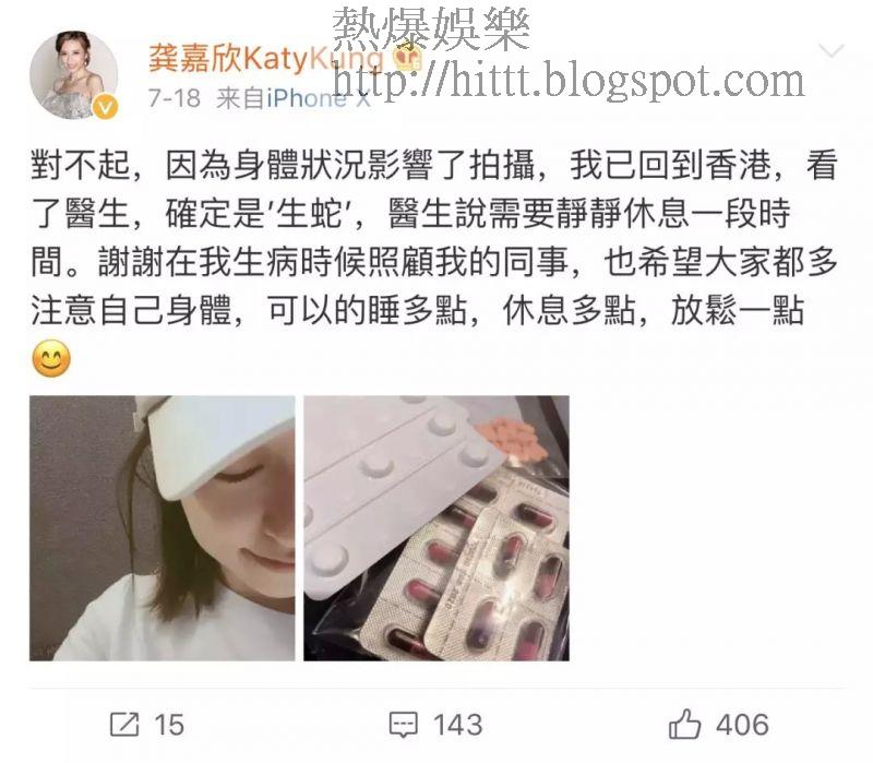 劉佩玥在Instagram分享感受,透露「生蛇」超級痛苦,