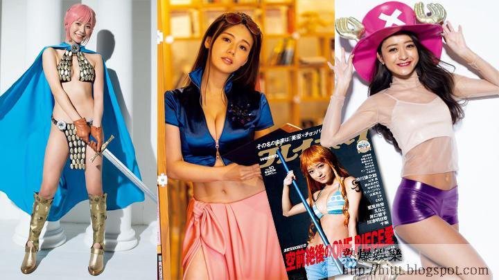 22歲人氣模特兒池田美優,為雜誌玩盡四個角色造型,除扮成性感的娜美(奈美)成為今期封面女郎外,還以可愛的Chopper形象登場,而30歲G Cup女主播鷲見玲奈,今次就沒有拋胸上陣,扮成海軍達絲琪(田鷸)。