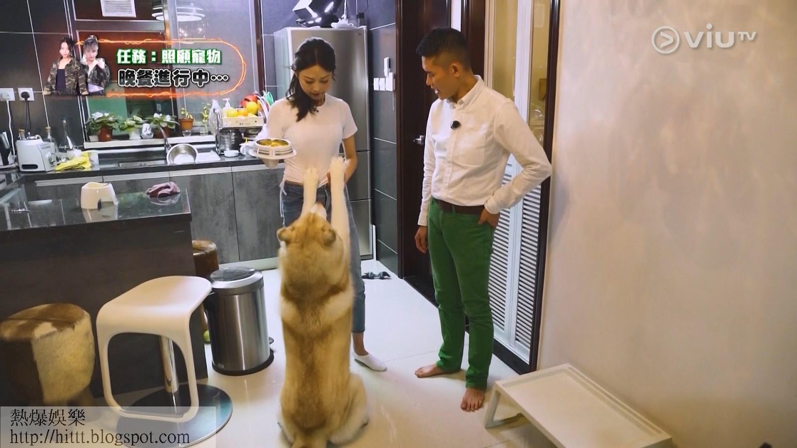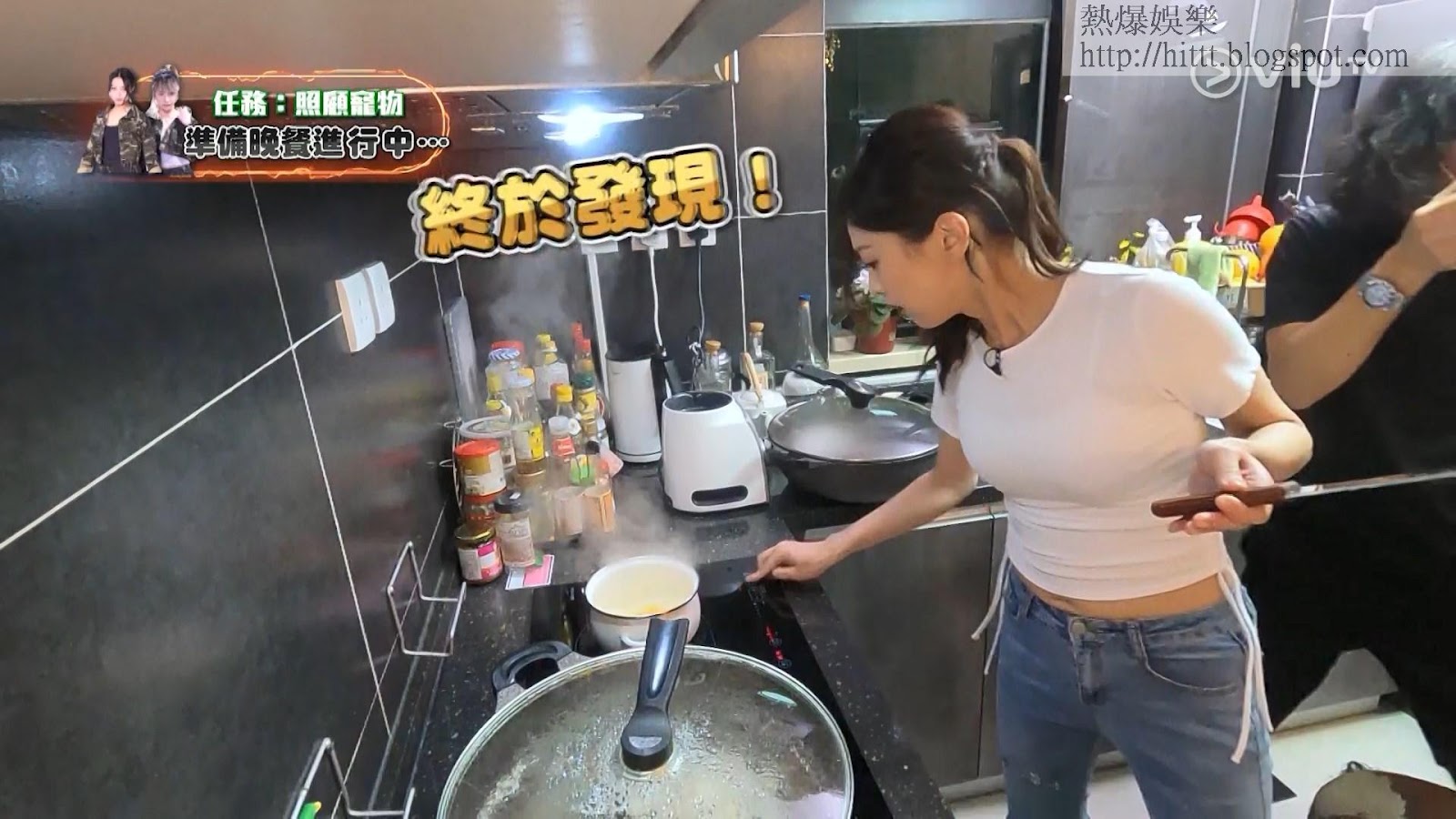 ViuTV真人騷《家務戰場》今晚講到馬俊怡(Rose Ma)及陳婉婷(Hebe)被分派去照顧寵物,由於Hebe天生怕動物,所以她第一時間示意負責為貓狗煮晚餐,不過煮到雞手鴨腳,求其將雞肉和南瓜壓碎,及後放在煲內煮,但她竟忘了睇火,因過熱不斷冒煙,Hebe亦察覺不到,最後更煮到燶晒!Hebe忍不住大叫:「頂,點算呀?」其後在屋主協助下,Hebe終於克服對動物的恐懼,更大膽為狗狗抹「屎眼」,更與牠們合照,事後她說:「我諗真係一個奇蹟,我諗唔係拍呢個節目,我唔會主動去接觸動物。」