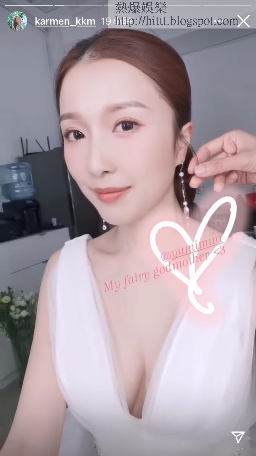 昨日(2月9日),Karmen卻突然在IG Story上載穿婚紗的短片,片中Karmen穿性感的婚紗,盡展驕人好身段,她對着鏡頭展露幸福笑容,更俏皮地向鏡頭單眼放電。