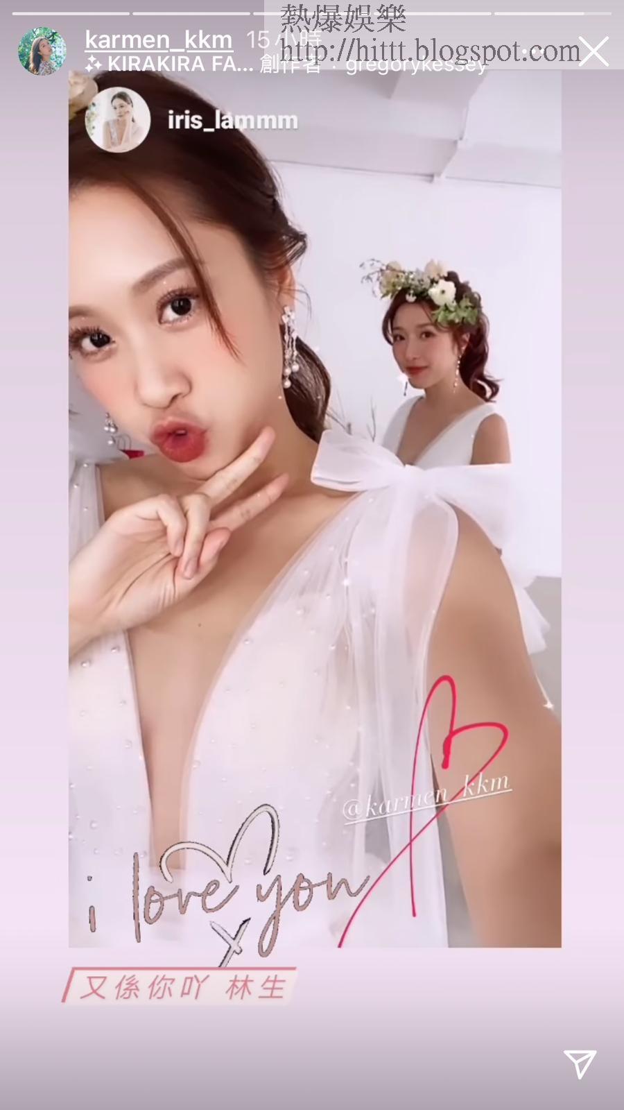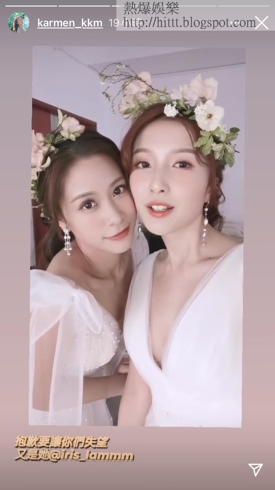 其實當日同行還有閨密林凱恩(Iris),她們兩個好姊妹一起穿婚紗拍照,Karmen更幽默地寫道:「抱歉要讓你們失望,又是她!」另外又稱:「又係你呀,林生!」林凱恩亦鬼馬寫道:「She said yes」。