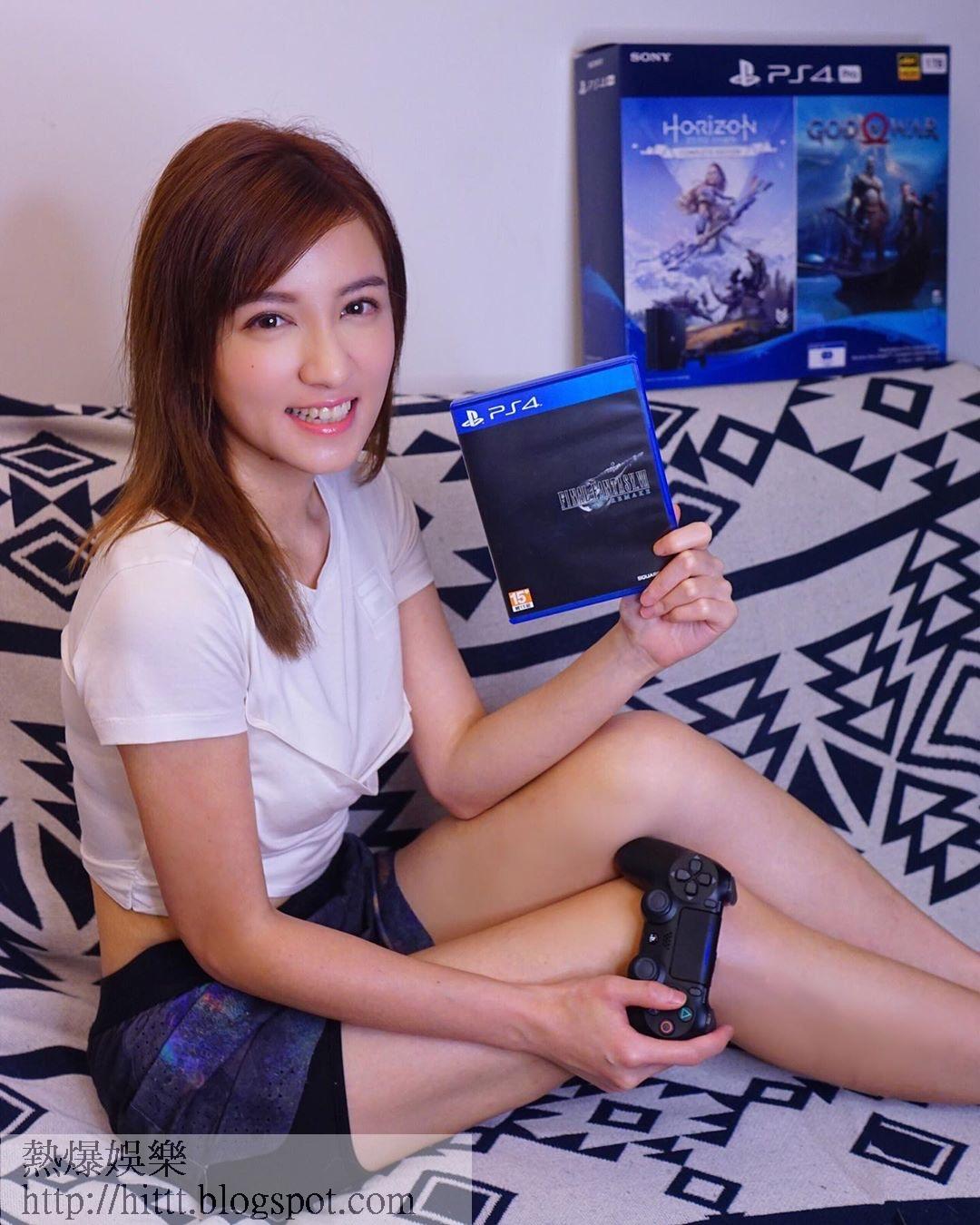 嘉倩在個人IG分享穿家居Look玩PS4的照片,相中的她罕有露出小蠻腰及長腿兼展示甜美笑容。(IG/@kasin520)