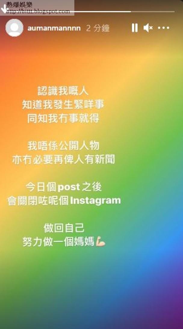 雯雯之後再更新社交網,表示會關閉帳號:「做回自己,努力做一個媽媽。」