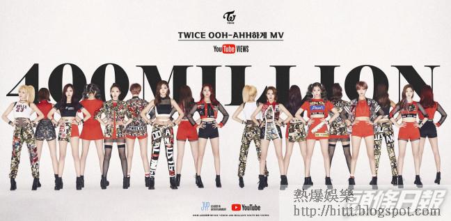 另外,在15年出道的TWICE,其出道曲《Like OHH-AHH》日前在YouTube觀看次數破四億,是團體繼《TT》、《LIKEY》、《What is Love?》、《CHEER UP》及《FANCY》後,第6首觀看次數超過四億的歌曲,而TWICE亦將在5月12日以日文單曲《Kura Kura》回歸。