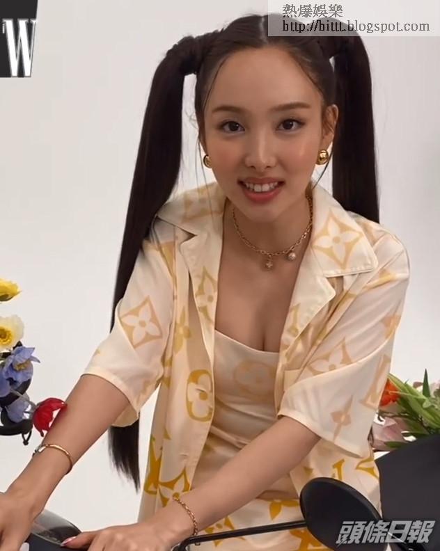 韓國女團TWICE成員娜璉為代言品牌拍攝雜誌相,以花花及電單車作主題,Sweet得嚟又有少少硬朗,而娜璉紮起孖辮夠晒精神爽利。TWICE最近開始轉型做成熟風格,娜璉着上一套米黃色短袖恤衫時,亦配搭同顏色背心,更罕有露出養眼事業線。