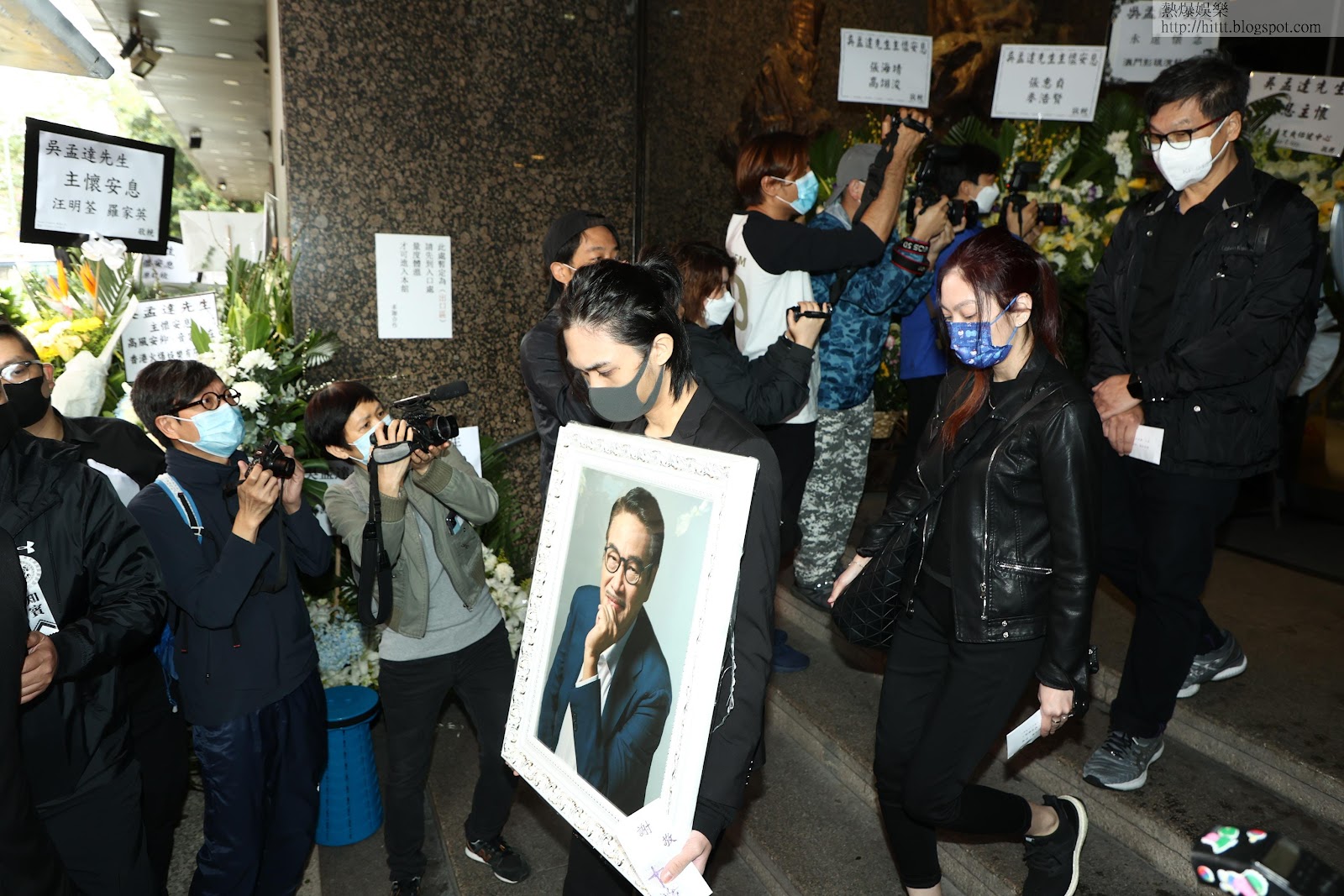 吳孟達兒子抵達靈堂送別父親。
