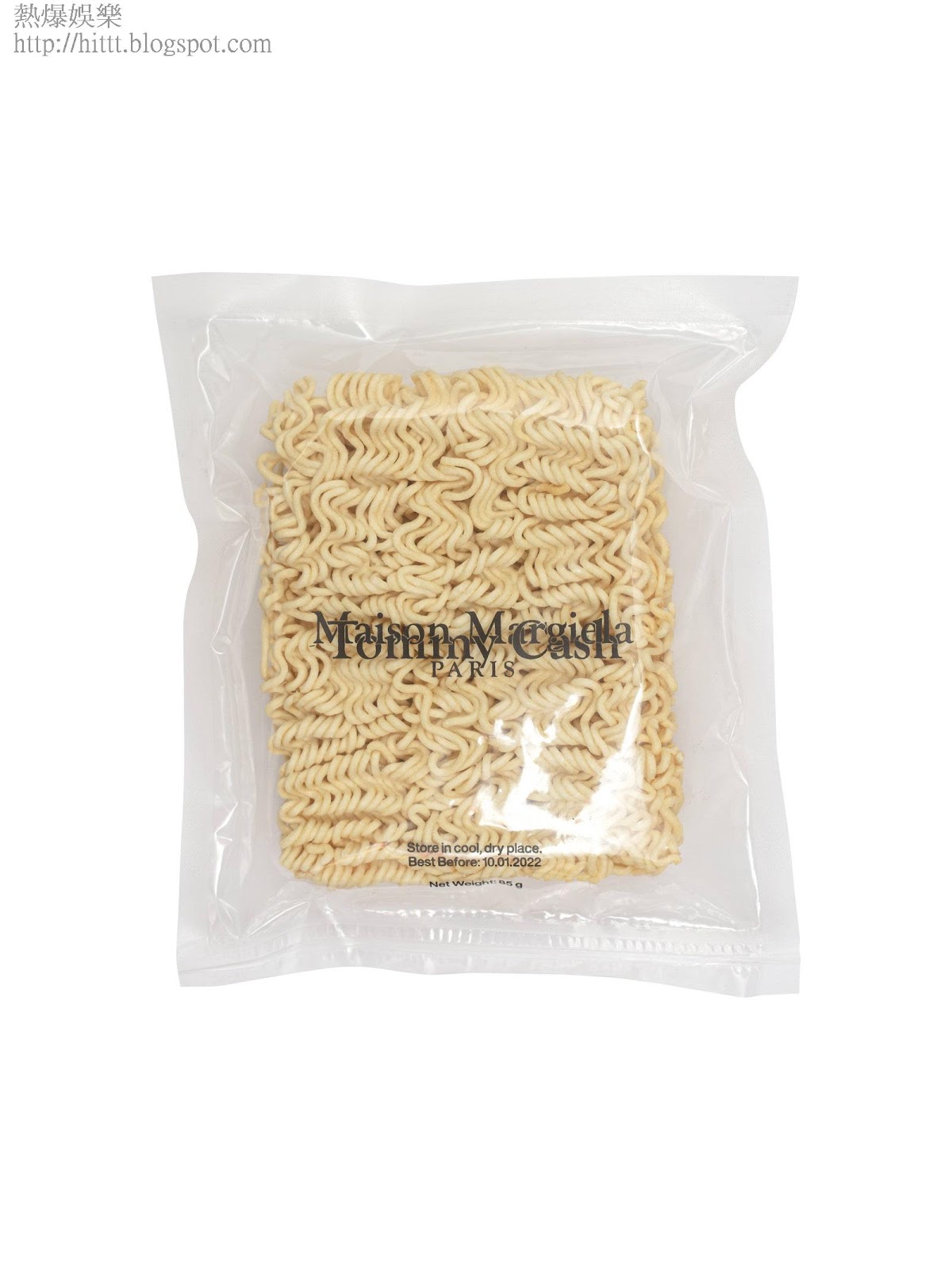 Tommy Cash x Maison Margiela系列只有4款產品,一件黑白衛衣、黑色T-Shirt、一對拖鞋和一包公仔麵。麵包拖鞋的原型誕生自2019年Tommy Cash和Rick Owens合作的藝術展覽,現在Maison Margiela將此藝術品變成可穿的產品,用上大量棉花夠puffy,印上聯乘Logo,賣€95(約港幣$950),以Maison Margiela的產品來說不算貴,但抵不抵買就見仁見智。至於一齊推出的公仔麵,有齊營養成分標籤,照道理可以食用,但品牌在包裝寫明:「這是一件收藏品,不是用來食的,要食的請自己承擔風險」,趣味滿fun。