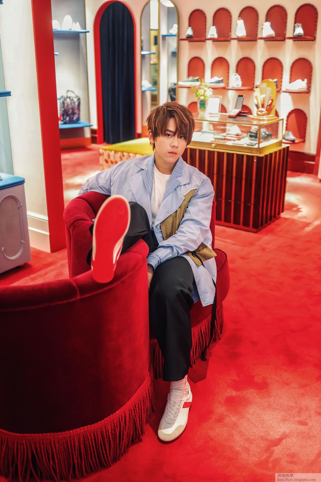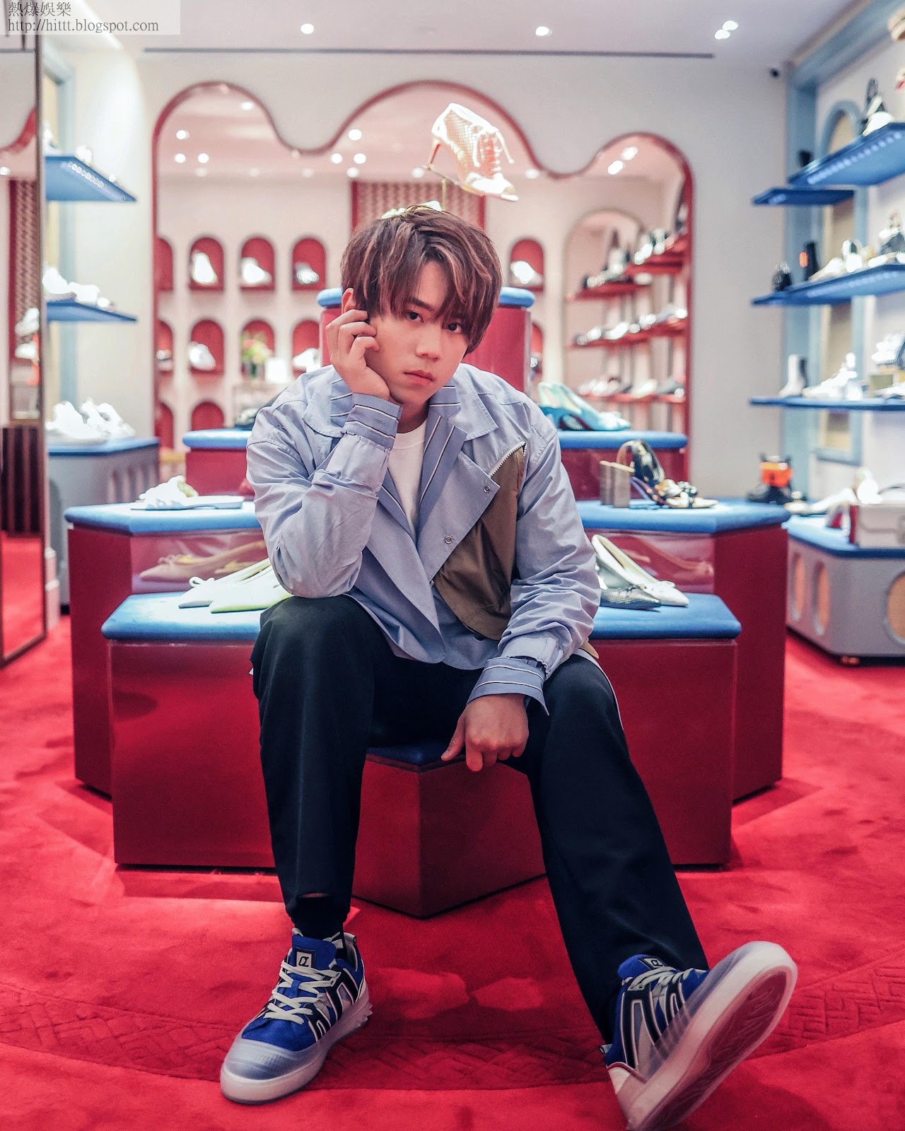 至於姜濤腳上的藍色波鞋,來自Christian Louboutin Vida Viva 系列,在經典sneaker 款中注入未來主義,鞋邊的藍色流線飾邊,靈感來大西洋北非摩洛哥海岸。