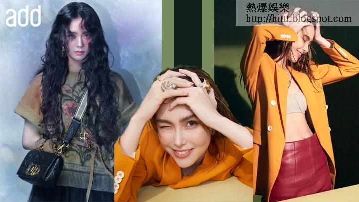昆凌着上橙黃色西裝外套搭配紅色皮裙,裏面單穿杏色bar top,露出平坦的腹部,更有少少腹肌線條,完全不像是兩個小朋友的媽媽,型格中帶點小性感。她戴上品牌Animaux動物系列的Hopi蜂鳥、Hans刺蝟及Masy變色龍戒指,色彩繽紛,高貴又不失趣意,昆凌特別擺出俏皮可愛的表情,魅力十足。
