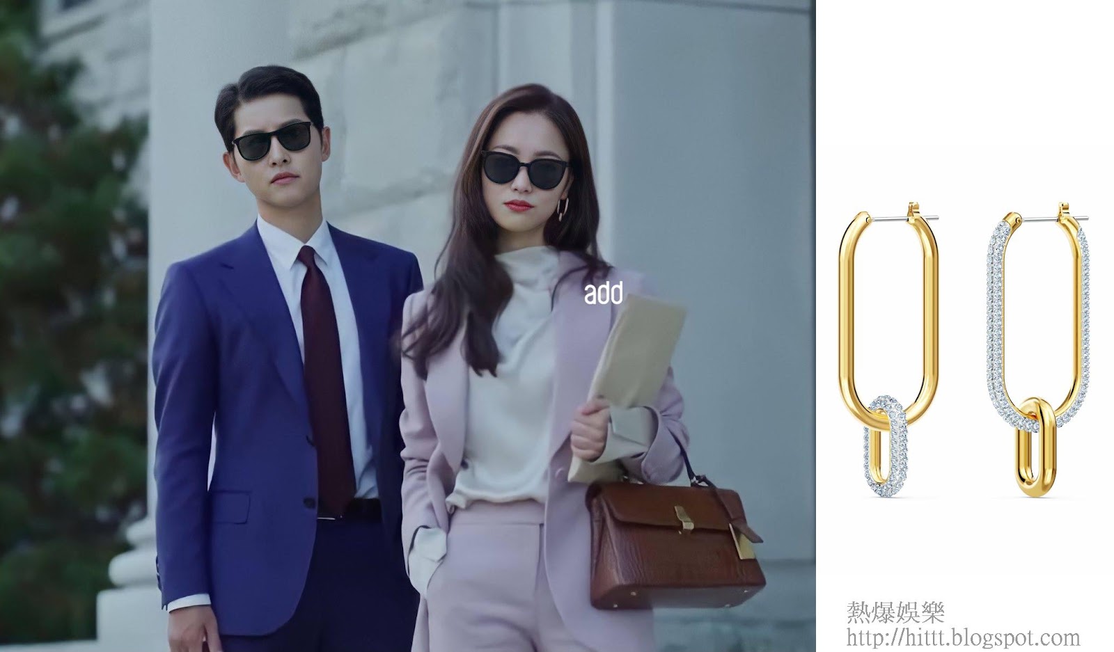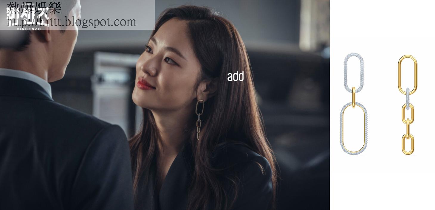 而女主角全汝彬在劇中雖然也是律師,也戴過Tiffany & Co.的腕錶,但其西裝造型比較平實,主要以簡約飾物展示幹練利落的一面,像她戴過的金屬鏈釦型耳環,均來自Swarovski,不規則地綴上水晶,為強勢的中性造型更添個性。
