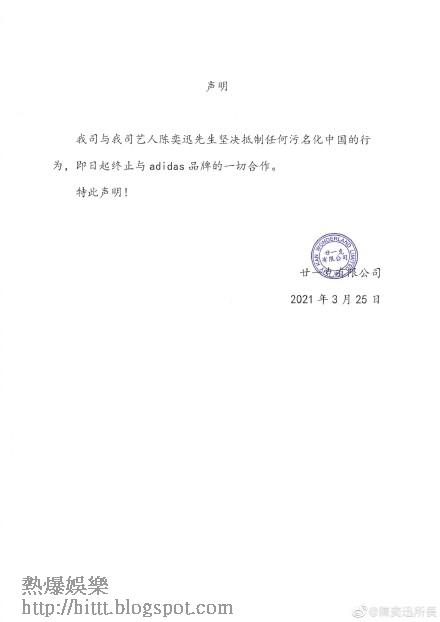- 陳奕迅及多個中港藝人紛紛發聲明解約。