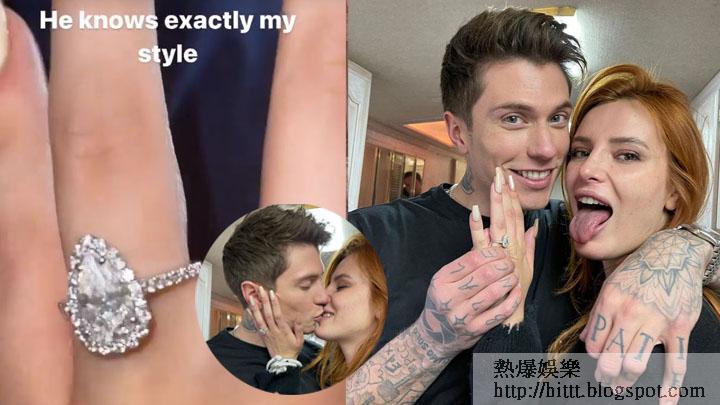 23歲美國女星Bella Thorne上周末接受意大利歌手男友Benjamin Mascolo求婚,兩人拍拖兩年,男方在社交網站貼上兩人多張煙韌合照,並透露驚喜求婚的經過。