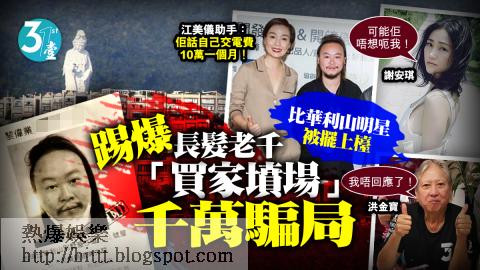 直至近日,大埔比華利山貼滿該「富二代」追債大字報,投資者才驚覺「富二代」早已失聯,而揭穿受騙,涉資數億元計。謝安琪、江美儀、陳豪等亦受牽連,震驚比華利山。有指該「富二代」益「自己友」為名推銷藥品,聲稱可獲高息回報。受害者向本刊異口同聲指:「佢成日搞慈善,背景咁大,點睇都唔似會騙人。」