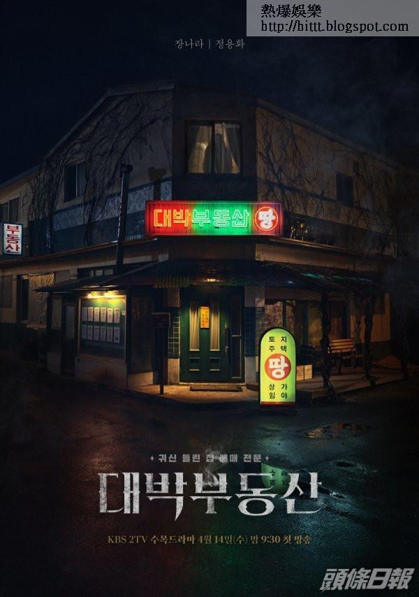 由張娜拉與鄭容和主演的韓劇《大發不動產》公開劇集海報,照片可見已是深夜,但只有「大發不動產」仍亮着招牌。位於轉角一幢舊建築的大發不動產似乎有點陰森,而二樓的剪影亦令人非常好奇。劇集講述一名地產經紀為有鬼神出沒的房屋驅魔並淨化的故事,張娜拉飾演不動產的社長兼驅魔師「洪智雅」,而鄭容和飾演不信有鬼的騙子「吳仁範」。《大發不動產》確定在下月14日首播。