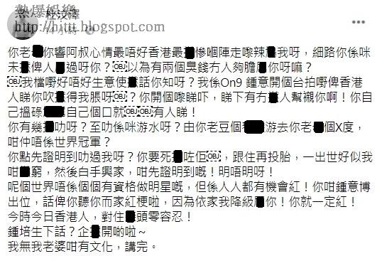 我檔嘢好唔好生意使話你知呀?我係OnX鍾意開個台拍嘢俾香港人睇你吹X得我脹呀?你開個嚟睇吓,睇下有冇X人幫襯你啊!你自己搵碌G X自己個口就有人睇!