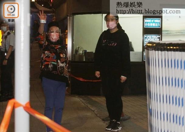 藝人薛家燕檢測後由女兒陪同返回大廈。(楊日權攝)