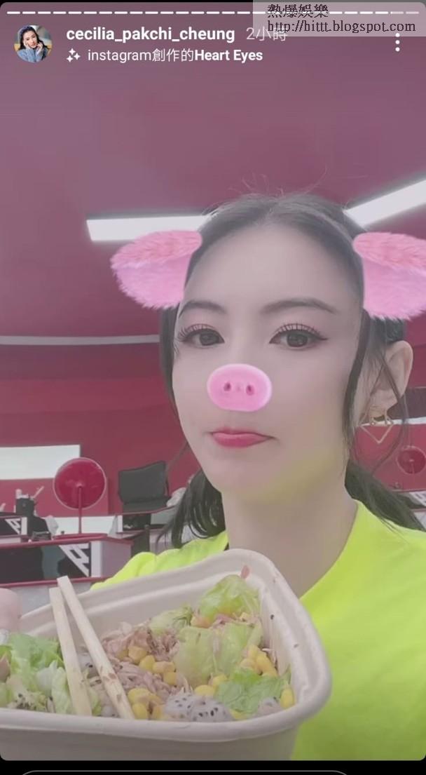 其實之前栢芝曾經被指「肚腩太大」,但她解釋過是因為褲中有褲,而且褲頭好大,所以才有凸腩效果。另外,她在社交網晒出食沙律的片段,未知是否在減磅呢?