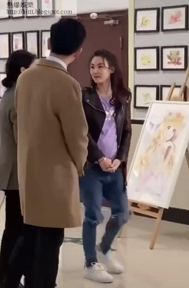 藝人張栢芝近日在內地工作,今日有網友偶遇她拍節目,見她穿上皮褸配襯白色波鞋,型格十足。又見她肚仔微凸,走路時又用手護着肚子,即引來不少網友揣測,好奇她是胖了還是再度有喜!