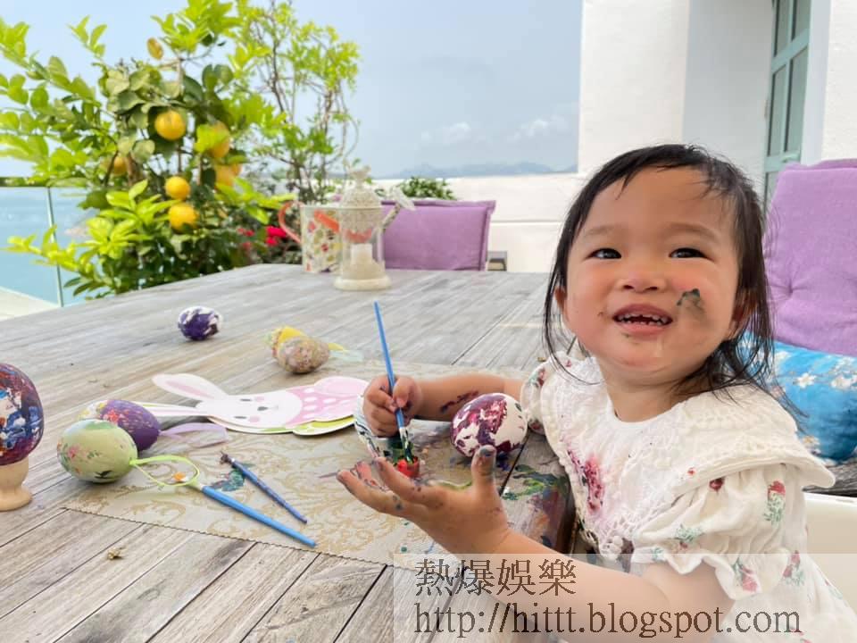 近日復活節將至,日前她在社交網分享了和囡囡製作復活蛋的過程,相中可見Esther用畫筆畫復活蛋時,弄到雙手及一身,甚至連臉上都有顏料,而媽咪陳少霞就一於少理,不怕污糟邋遢,讓女兒自由發揮。畫好的復活蛋,之後還掛在天台所種的樹上。可見她的獨立屋不單止坐擁無敵海景,其天台可容納種花、種樹,還擺放了戶外枱椅,環境十分寬敞,而種菜的小花園雖然在地下位置,同樣有足夠空間讓Hazel種了多種蔬菜。