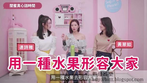3人要以1種水果形容大家,其中翠如諗咗好耐,話覺得YoYo係個菠蘿:「因為我認識嘅阿Yo,其實身上係帶刺!」仲叫佢即場示範唔笑望住鏡頭,YoYo即時神還原當日台慶頒獎禮,老公王浩信攞獎時,佢被指黑面嘅一幕!翠如即話:「你就覺得佢寸緊㗎喇!佢個樣係好似對每一件事都有一個好大嘅睇法。」Shiga都話當初識YoYo時都擔心「佢會唔會唔鍾意我呢」,仲直情有問過翠如,YoYo就話其實自己都知:「我係比較慢熱,細個時更加係咁,但依家愈嚟愈進步,都驚人哋似你哋咁感覺我難相處,依家已經盡量去tune,大家有冇覺得我好啲其實?」翠如就話有:「佢係帶刺嘅菠蘿,但內心真係好甜嘅女仔。」又話YoYo好似佛,因為好大包容。