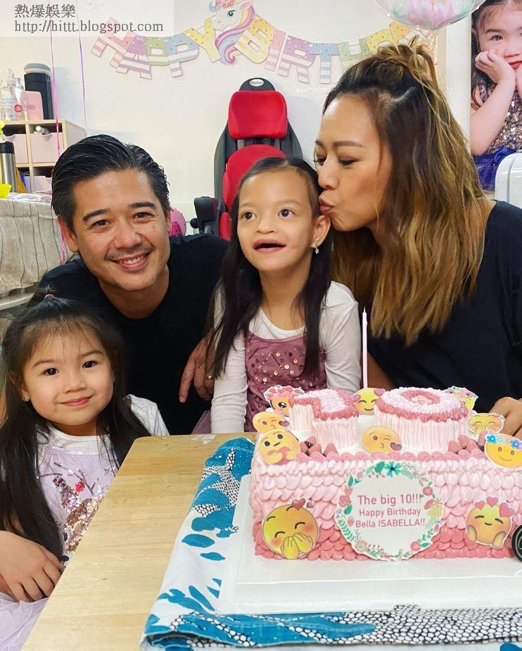 Isabella去年踏入10歲生日,鍾麗淇抱着女兒開心起舞。(網上圖片)