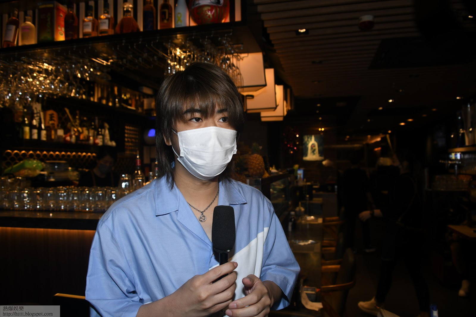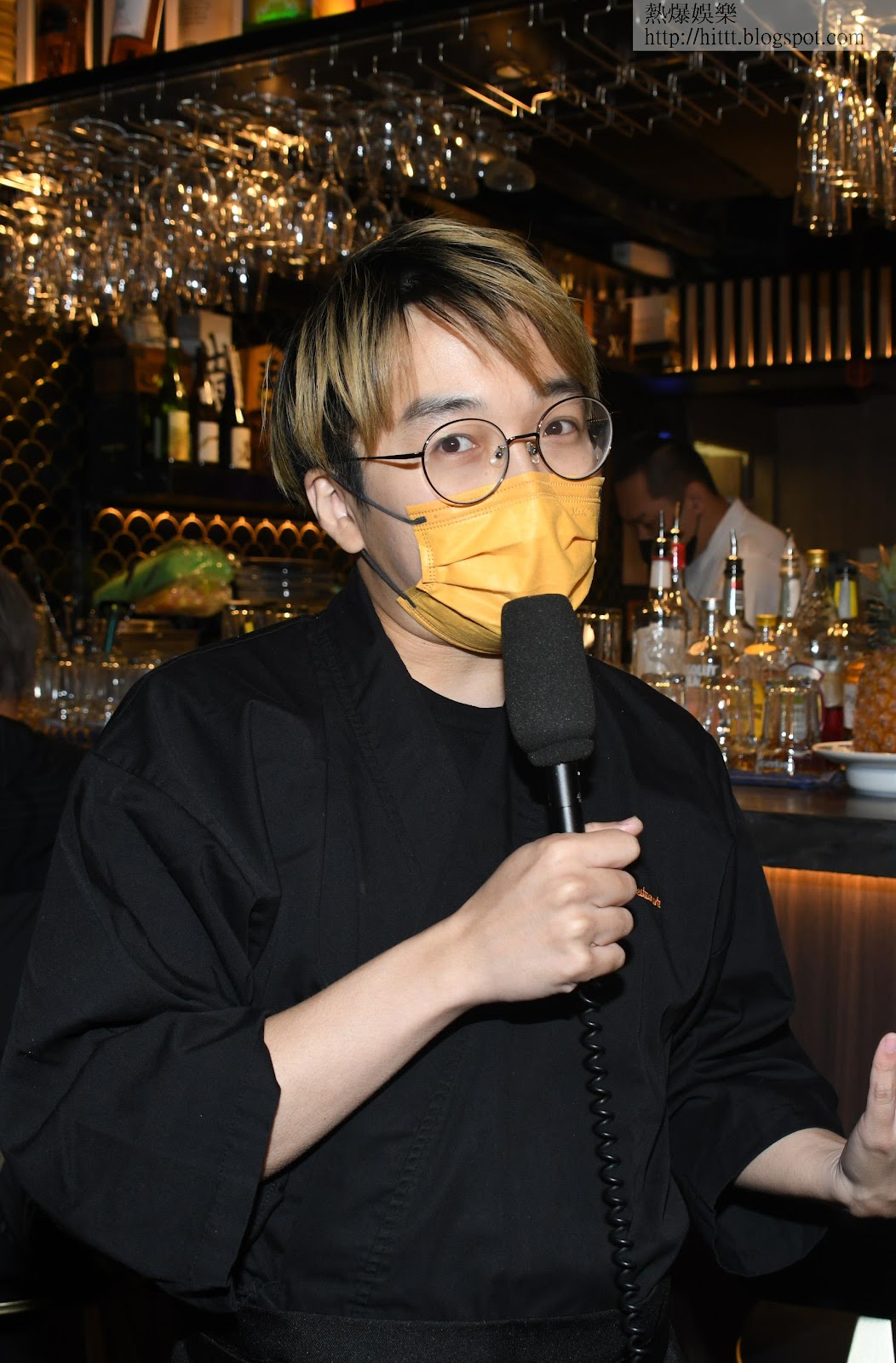 為撐黃色經濟圈,阮民安(Tommy)和二創音樂人晴天林,今日在尖沙嘴餐廳Aurora Fusion Restaurant做店長招呼食客,Tommy變身調酒師,用台灣鳳梨特製「民安水」;戴上黃色口罩的晴天林就化身壽司師傅整「晴天卷」,兩人都整得有板有眼。「劉公子」劉定成亦有特別到場支持。