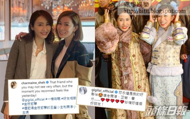 45歲的佘詩曼與49歲的黎珈而(前名黎姿)是同期的電視台當家花旦,當年合演熱播劇《金枝慾孽》時沒有為爭戲份及爭做視后鬧不和,反而對晒嘴形,老友到不得了。近年馬黎珈而出嫁後退出幕前,而近年阿佘為了工作,轉戰內地發展,卻未有影響姊妹感情,不時隔空互動。相隔多時一對好姊妹終於有時間相約見面,不約而同在社交網站分享同一張合照,兩人傾到冇停口,之前發生嘅事都好似係噚日咁。黎珈而在社交網站留言:「很久沒見面了!@charmaine_sheh跟我短聚,共渡愉快時光。期待着妳帶給大家更多精彩作品。」更形容二人今次短聚是「金枝慾孽re-u」。