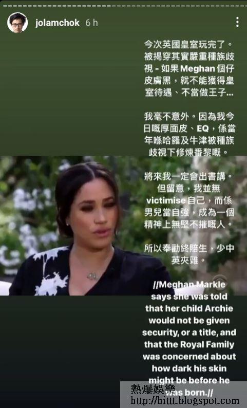 另一方面,自從上星期林鍾開記招後,有指原本撐鍾培生的網民,因應記招的表現,紛紛轉口風撐EQ和口才較高的林作,但民意話轉就轉,昨日林作在IG動態貼出梅根和哈利接受訪問的片段,當中梅根提到皇室存有種族歧視問題,本身在英國牛津畢業的林作,身同感受指當年自己亦試過被種族歧視,更指自己EQ高面皮厚,全因當年在歧視中磨練出來的。有連登網民出po,指林作說備受連登仔推崇的英國壞話,犯了禁忌,因此再次轉軚支持鍾培生。