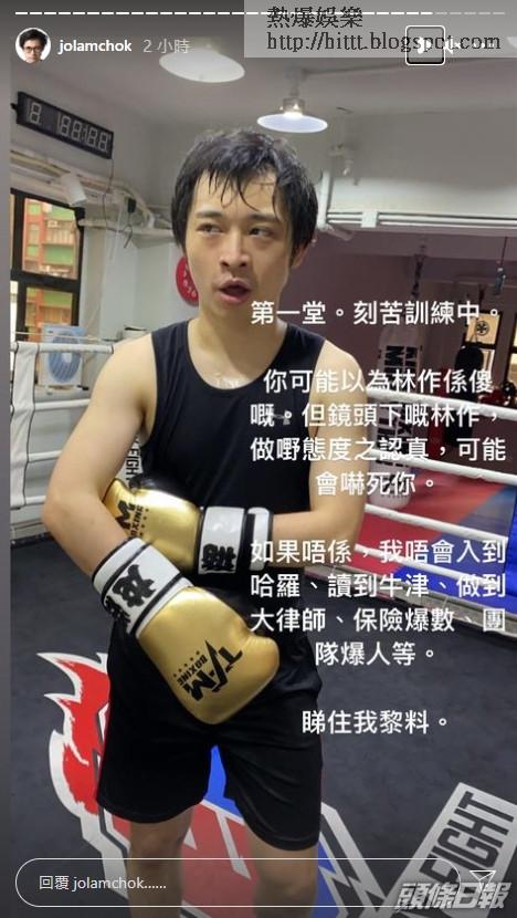 林作早前在社交網以一句「抄我100萬?」辣着「百億富三代」鍾培生,後者豪擲100萬邀林作上擂台對打,雙方隔空罵戰擾攘半個月,終於落實在今年9月開打。作為拳擊新手的林作最近積極備戰,今日他在IG透露已開始接受訓練,又分享練拳照片。