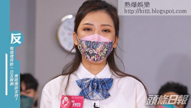 至於第二回合的辯論比賽,佳麗要就「應否支持每星期斷一日互聯網」開始辯論。其中044孖四以母親病危的經歷,說明互聯網的重要性,途中更說到眼濕濕;093服務員就大膽提起TVB,以ViuTV《全民造星III》及TVB《衝上雲霄大選》收視作例子,指出互聯網令市民減少坐定定睇電視。