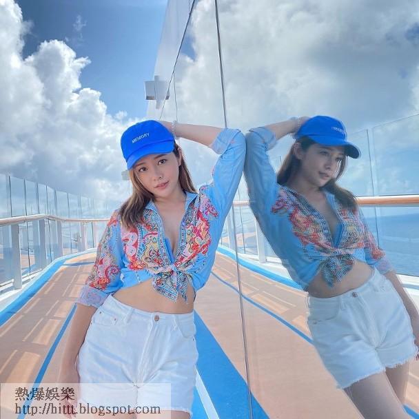 只見佢喺甲板坐住沙灘椅,歎住凍飲灑日光浴,又喺船上周圍擺甫士照靚相,並留言話:「喺藍海中間嘅郵輪上非常開心,鍾意飲雞尾酒同好多食物!」、「好天氣係最好嘅Filter!」即令一眾網民牙癢癢,仲話好想同佢一齊出海添呀!