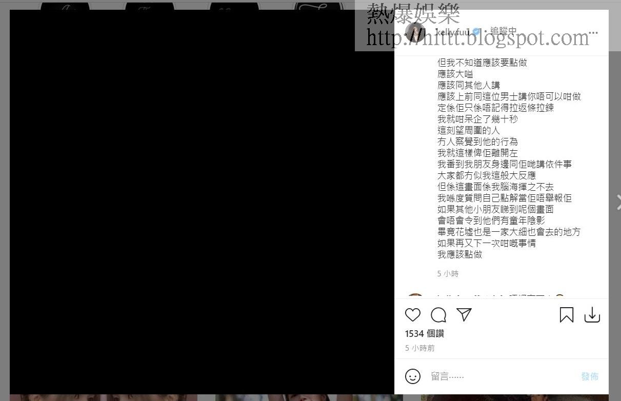 傅嘉莉怒斥猥褻行為。(IG@kelly.fuu截圖)