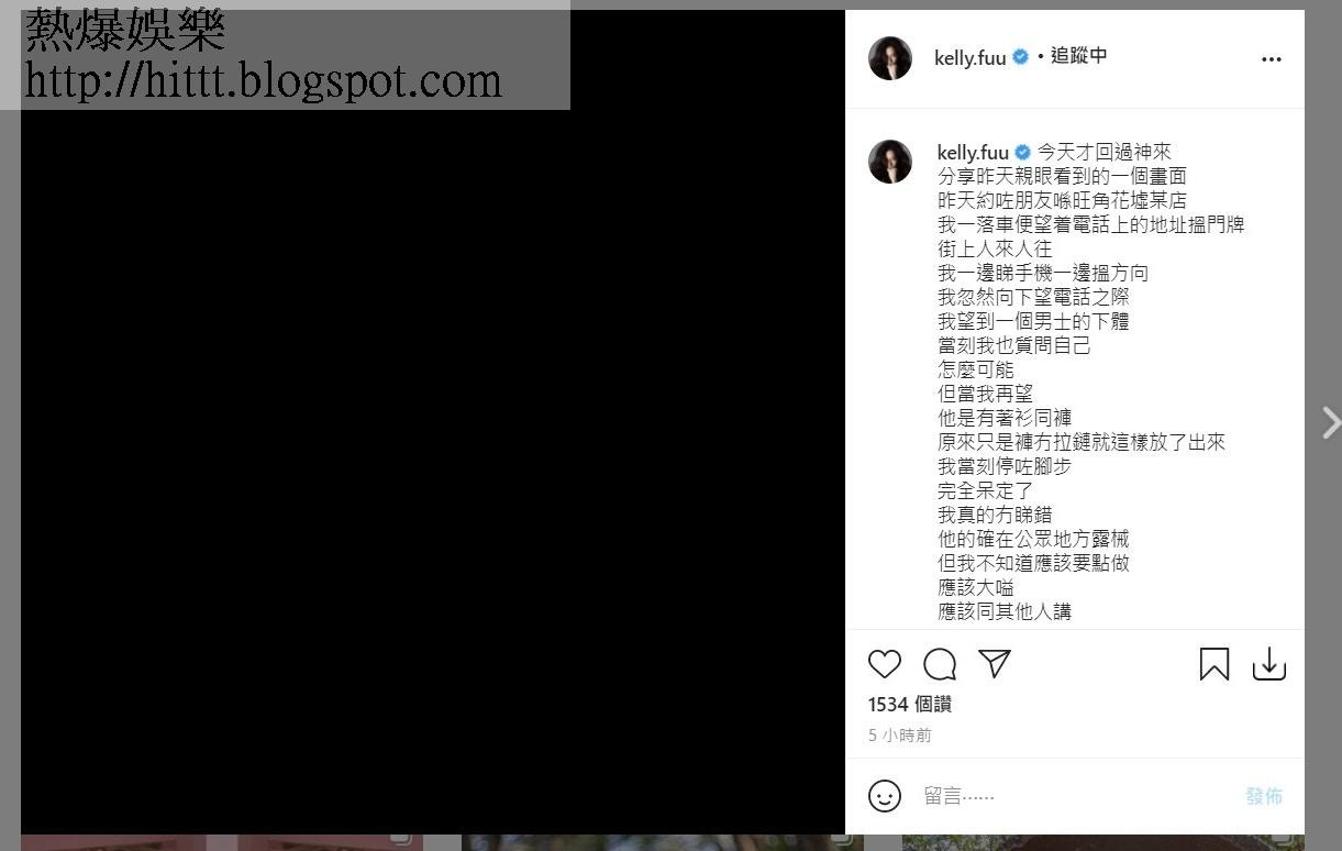 在公眾地方做出猥褻行為不單止是有失巿容,更加會帶來公眾不安,甚至會對旁人構成心理陰影! 昨日(7/3)傅嘉莉就在IG以「黑Post」的方式將一名男子的猥褻行為公告天下,更對自己當時沒有挺身而出而感到內疚:「昨天約咗朋友喺旺角花墟某店,我一落車便望着電話上的地址搵門牌,街上人來人往,我一邊睇手機一邊搵方向,我忽然向下望電話之際,我望到一個男士的下體......這畫面係我腦海揮之不去,我喺度質問自己點解當佢唔舉報佢,如果其他小朋友睇到呢個畫面,會唔會令到他們有童年陰影,畢竟花墟也是一家大細也會去的地方,如果再又下一次咁嘅事情,我應該點做」。