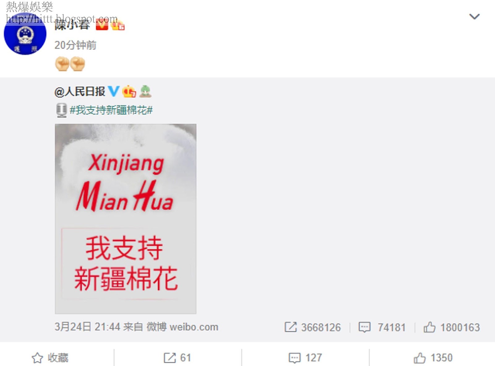 至於出名有一顆「愛國心」的陳小春,日前就官媒《人民日報》發起的「我支持新疆棉花」話題,積極響應表態支持,但他在另一個微博post,留言撐大陸官員在中美阿拉斯加會談表現時,在該則帖文上所顯示用iPhone 11 Pro,被網民質疑他是「黃皮白心」及「口裏說不,身體卻很誠實」的人辦,而同樣表忠愛國的譚詠麟和阿B鍾鎮濤,一樣有使用iPhone,因此兩兄弟亦被大陸小粉紅狙擊,質疑是否有愛國心。